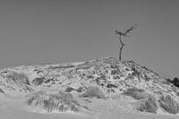 Eenzame dode boom op in het zand op een duin in de buurt van Burgh-Haamstede