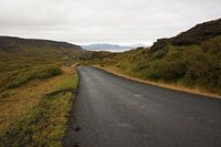 Verlaten weg in IJsland. In tegenstelling tot veel wegen in dit land, is deze weg wel verhard. In het najaar wordt hier echter maar weinig gebruik meer van gemaakt.