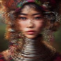 Laat je betoveren door een kleurrijk werk van een longneck vrouw, geïnspireerd op de pracht van de Padaung-klederdracht. Het werk straalt levendige tinten en traditionele flair uit, waardoor elke ruimte tot leven komt met een vleugje culturele diversiteit en creativiteit. Ontdek de schoonheid en energie en laat je meeslepen door de rijke tradities van de Padaung-gemeenschap.