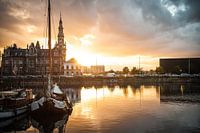 Zonsondergang Antwerpen aan het Willemdok met zicht op het loodswezen.
