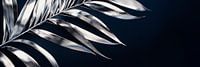 Een glinsterend blad, elegant en stijlvol, ontvouwt zich tegen een diepe, mysterieuze achtergrond. De zilveren nuances vangen het licht op een fascinerende manier, terwijl de fijne contouren doen denken aan een zachte windvlaag. Een harmonieuze combinatie van natuurlijkheid en modern design dat zowel rust als gratie uitstraalt.