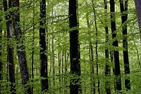 Loofbos in de lente, de lichtgroene bladeren zijn nog niet helemaal uitgevouwen