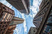 Omhoog kijkend tussen de wolkenkrabbers levert zomaar een mooi plaatje op.