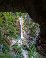 Een doorkijkje naar de Tschaukofall waterval. Dit is het hoogtepunt na een wandeling door de Tscheppaslucht. Een prachtige kloof bij Ferlach in Oostenrijk