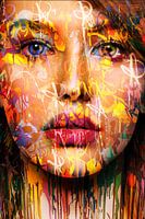 Close up portret van een vrouw met een mixed media van tekens en verf.