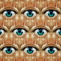Grafische herhaling van een oog in popart stijl, bijna als een M.C. Escher meets Salvador Dali, door de vervreemdende sfeer. Wie kijkt er naar wie?