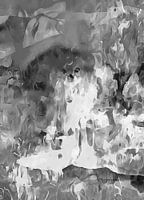 Dit is een abstract stuk fotokunst gemaakt in zwart-wit. Verborgen in de foto is het spookachtige beeld van een klein hondje. Misschien zie je haar naar je kijken? Je kunt nog net de ogen en neus zien en misschien de vorm van de oren als je goed kijkt.