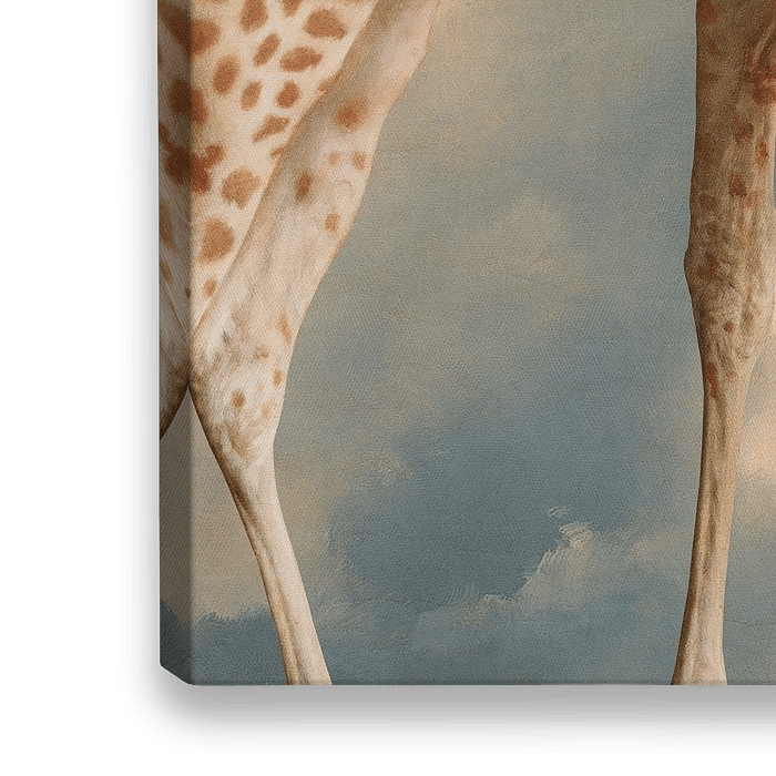Detail opname van een giraf tegen een prachtige wolkenlucht. Vintage afwerking.
