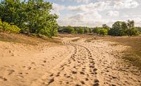 Slingerende wielsporen in het losse zand van Nationaal Park De Loonse en Drunense Duinen bij Udenhout, Noord-Brabant.