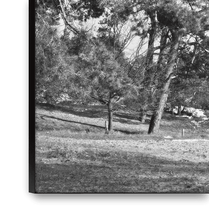 Loonse en Drunense Duinen, Minimalistische foto van bomen op de grote zandvlakte achter Bosch en Duin in Udenhout.