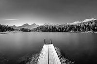 * Stazermeer * Zwart-wit landschap. Meer in de Zwitserse Alpen bij St. Moritz in het Engadin / Oberengadin.