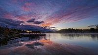 Loopbrug in het meer van de verlaten Rummu-groeve in Estland bij zonsopgang