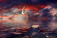 Koop de foto Loopbrug met zeemeeuw van Edgar Schermaul als print op canvas, aluminium dibond, (ingelijste) fotoprint, behang en ArtFrame. Voor jou op maat geprint in Fine-Art kwaliteit.