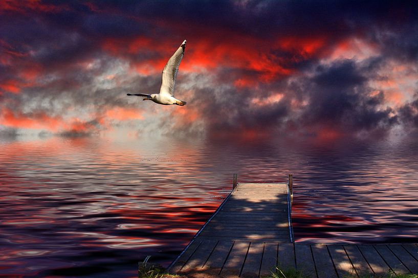 Loopbrug met zeemeeuw van Edgar Schermaul
