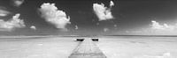 Loopbrug op het strand in het Caribisch gebied in zwart-wit. van Manfred Voss, Zwart-Wit Fotografie