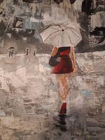 Koop dit schilderij Lopen in de regen. van Jose Leeuwis als reproductie geprint op canvas, aluminium dibond, (ingelijste) fotoprint, behang en ArtFrame. Voor jou op maat geprint in Fine-Art kwaliteit.