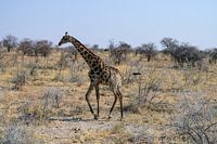 Heel sierlijk loopt de Giraf door het landschap. Met zijn lange poten kan hij grote afstanden afleggen op zoek naar malse bladeren en water.