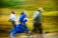 drie mensen mannen vrouw die met motieonscherpte en snelheid abstract lopen