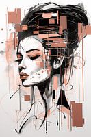 Expressief portret van een vrouw in profiel stijl met matte zwart en poederbruine tinten.