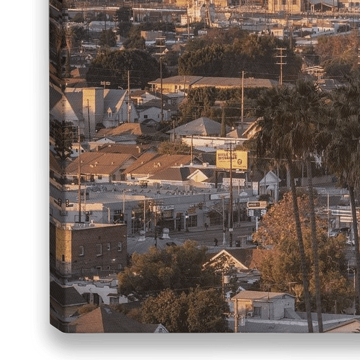 Koop de foto Los Angeles Skyline van Photo Wall Decoration als print op canvas, aluminium dibond, (ingelijste) fotoprint, behang en ArtFrame. Voor jou op maat geprint in Fine-Art kwaliteit.