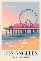 Zachte pastelkleuren omhullen een schilderachtige achtergrond van het fascinerende Los Angeles. De zachte golven weerspiegelen de zonsondergang, terwijl het iconische reuzenrad majestueus op de pier staat. Dit kunstwerk brengt het gevoel van vrijheid en avontuur naar je woonkamer, perfect voor de muur die je uitnodigt om te dromen.