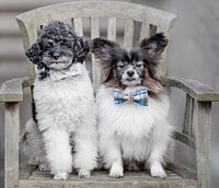 hond, honden, poedel, dwergpoedel, harlekijn, harlekijnpoedel, papillon, papillons, vlinderhond, hondenkoppel, hondenvriendschap, koppel, vriendschap, liefde, samen, gemeenschappelijk, geluk, huisdier, huisdieren