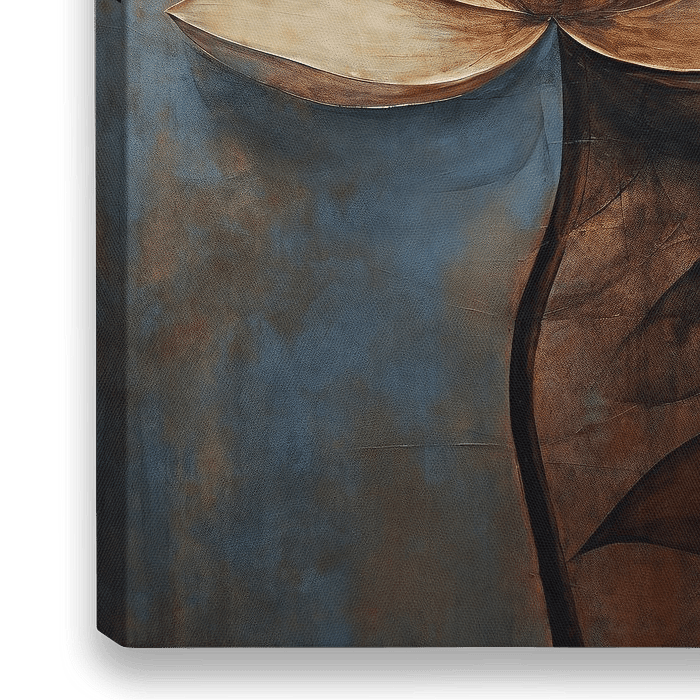 Abstracte lotusbloem met een verweerde hout textuur in blauw en bruin tinten.