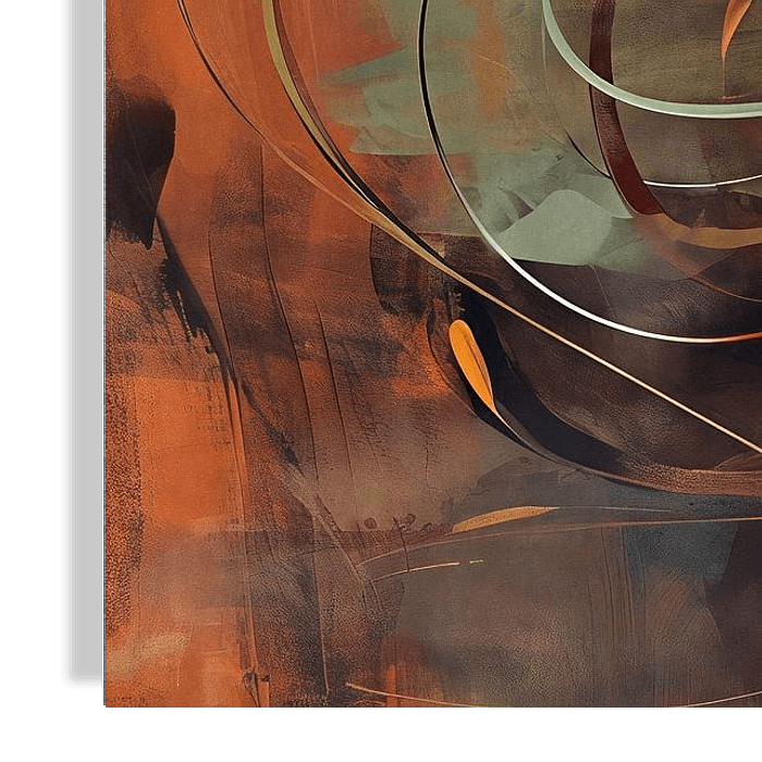 Abstracte lotusbloem in warme aardetinten met voornamelijk oranje, roestbruin en olijfgroen.