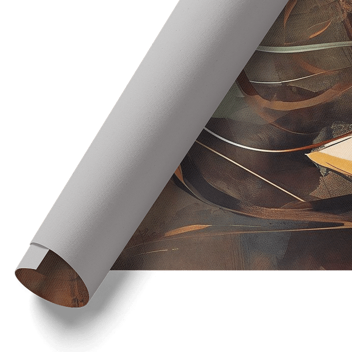 Abstracte lotusbloem in warme aardetinten met voornamelijk oranje, roestbruin en olijfgroen.