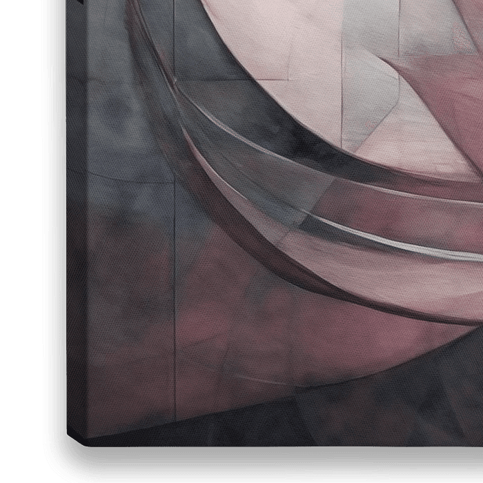 Abstract lotusbloemontwerp toont een mix van zacht roze, paars en grijs met gebogen lijnen en geometrische vormen. De moderne, gestileerde weergave richt zich op vloeibaarheid en beweging binnen de compositie.