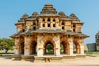 Buitenaanzicht van de ruïne van het Lotus Mahal paleis in Hampi, een UNESCO World Heritage Site, in Karnataka, India, Azië