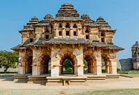 Buitenaanzicht van de ruïne van het Lotus Mahal paleis in Hampi, een UNESCO World Heritage Site, in Karnataka, India, Azië