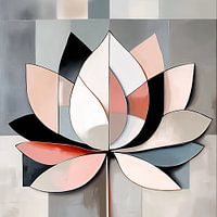 Abstracte lotusbloem in aardetinten met poeder roze accentkleur.
