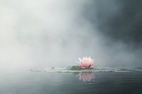 Deze serene foto toont een delicate roze lotus die zachtjes drijft op een stille wateroppervlak, omhuld door een sluier van mist. Het minimalistische ontwerp en de zachte kleurtonen stralen rust en eenvoud uit, waardoor het een perfecte aanvulling is op ruimtes die een vleugje kalmte en elegantie nodig hebben. De subtiele kleuren van de…