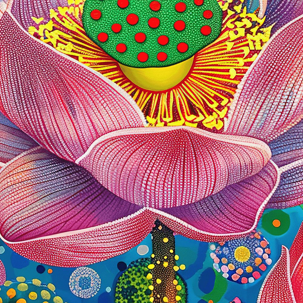 Lotus van de Sterren" is een etherische weergave van een kosmische bloei, waar de delicate bloemblaadjes van een lotusbloem samensmelten met de hemelse uitgestrektheid. Het kunstwerk is rijk aan levendige kleuren en ingewikkelde patronen, waarbij de lotus wordt afgebeeld als een symbool van zuiverheid en verlichting, zwevend in een universum vol sterren en sterrenstelsels. Het nodigt de kijker uit om na te denken over de verbinding tussen de schoonheid van de natuur en de mysteries van het heelal.