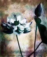 Een sfeervol natuurschilderij van een lotusbloem in de stijl van de grote meesters van het impressionisme en expressionisme.