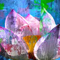 Mijn Lotus kunstwerk is een sfeervol bloemstuk tegen een abstracte, moderne achtergrond als schilderij. Voeg kunst toe aan je muren en maak er een echt thuis van.