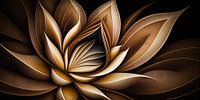 Abstracte lotusbloem in warme aardetinten met een grove textuur van metaal en hout.