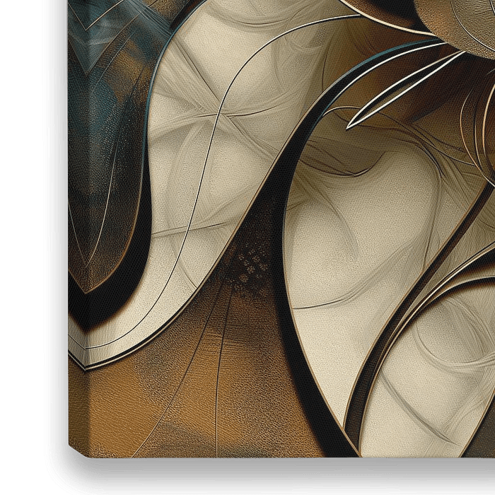 Abstracte lotus bloem in voornamelijk goud,teal en bruin tinten met een grove textuur.