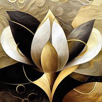 Abstracte lotusbloem in bruin en goud tinten met een hout textuur.