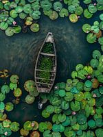 lotusvijver met vissersboot in bali