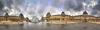 Prachtige 360 graden panorama opname van museum het Louvre in Parijs, Frankrijk, met de bekende piramide op een bewolkte lentedag