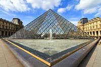 Prachtige opname van de bekende piramide van museum het Louvre in Parijs, Frankrijk, op een mooie lentedag