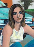 Acryl schilderij, gebaseerd op het werk van de Mexicaanse kunstenaar Jaime Martinez.