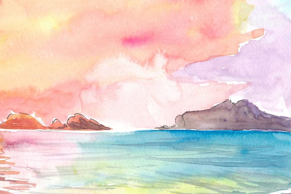 Verliefd op een prachtige Caribische zonsondergang in aquareltechniekMarkus Bleichner Noordkaap en poolbol Zonsondergang Kleuren van de noordelijke horizonMarkus Bleichner