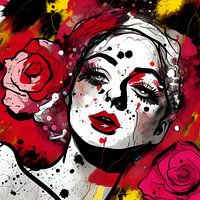 "Love Drunk" is een betoverend mixed media kunstwerk dat de essentie van liefde en passie omhult. In dit werk wordt het portret van een vrouw subtiel omlijst door weelderige rode rozen aan beide zijden, waardoor een gevoel van rust en tederheid ontstaat. De vrouw lijkt te zweven te midden van deze bloemenzee, een verleidelijke omarming van liefde.