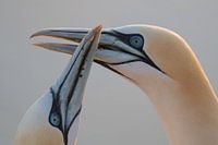 Portret van 2 liefkozende Jan van Genten, gemaakt op Helgoland.