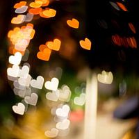 Het verhaal van een decemberavond, spelend met de camera ben ik tot dit beeld gekomen. De lichtjes van de kerstboom omgetoverd naar hartjes.