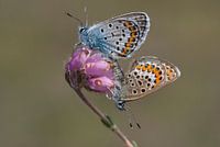 Parende heideblauwtje op de dopheide. De eerste keer dat ik ze zag en mij verbaasde over de grootte (Heel klein)