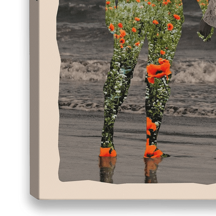 Een strand als in een droom met een verliefd stel in neutrale beige en bruine kleuren.